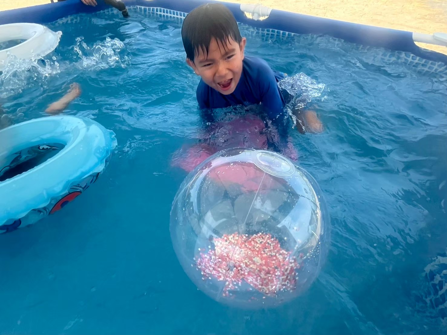 全ての写真 プール遊び 2025.08.04 毎日とても暑い日が続きますが、職員数の多い日にプール遊びを楽しんでいます。 今年は昨年までよりも一回り大きいプールにしたので、より一層楽しそうです♪ 事故のないよう、気をつけながら楽しみたいと思います。 夏休みイベント~お金の講座 前の記事 夏休みイベント~スライム作り 次の記事