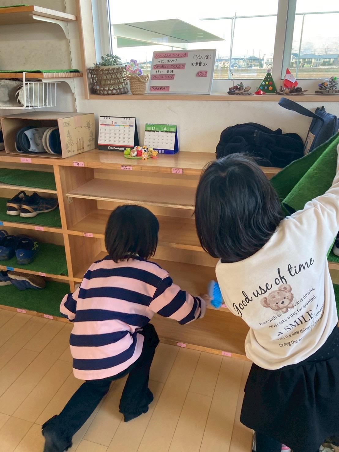 全ての写真 12月最終日は大掃除をしました 2025.12.26 2025年最後の開所日に子ども達全員で大掃除をしました。 学年ごとに掃除を担当する場所を決め、はりきって掃除してくれました。 おかげとてもきれいになりました。 2026年もどうぞ宜しく御願いします。 お正月しめ縄作り 前の記事 スマイル神社へ参拝 次の記事