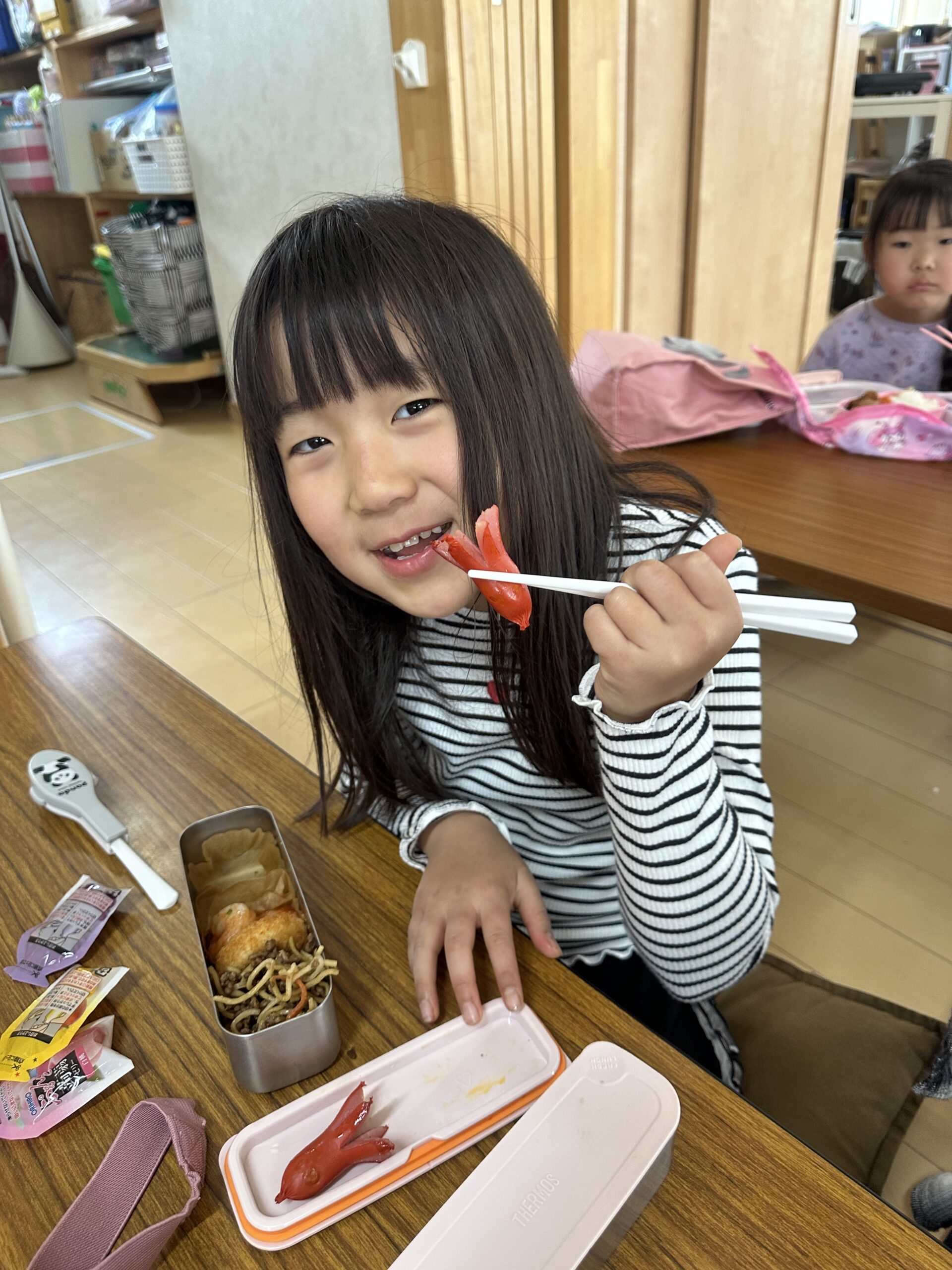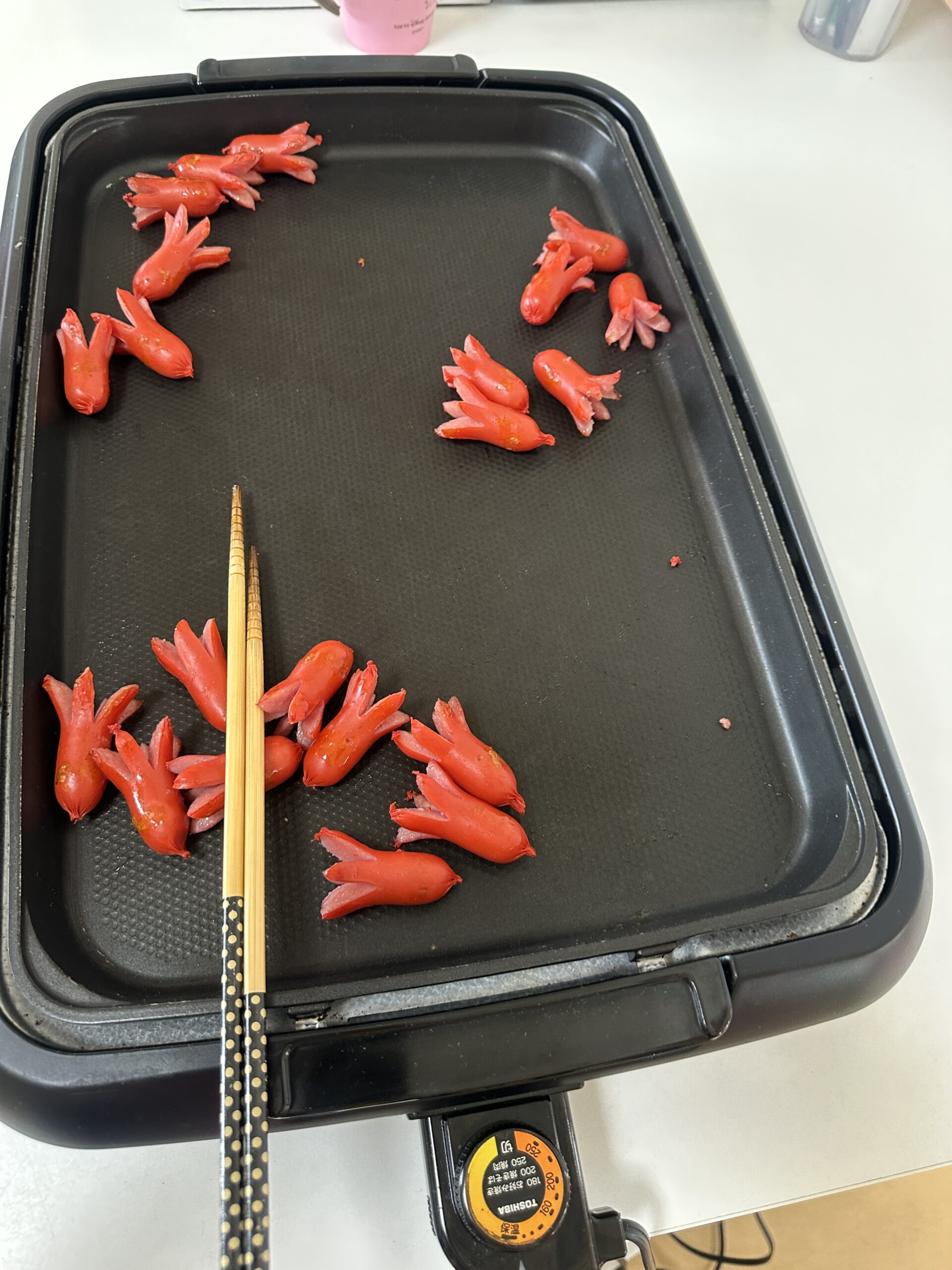 お弁当の時間にたこさんウインナーを焼いて食べました^^