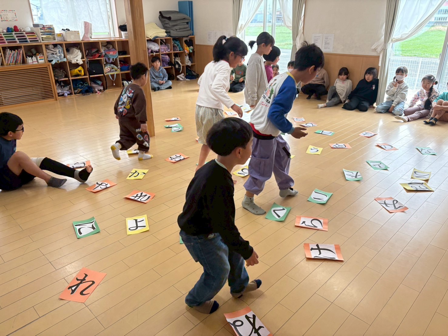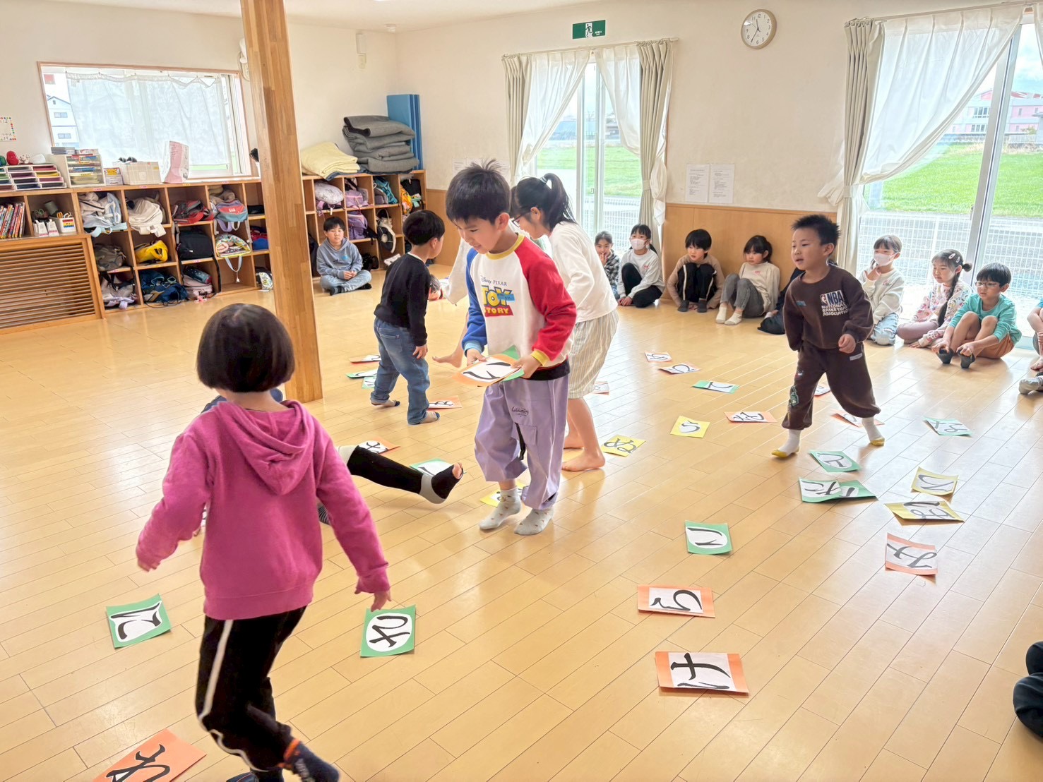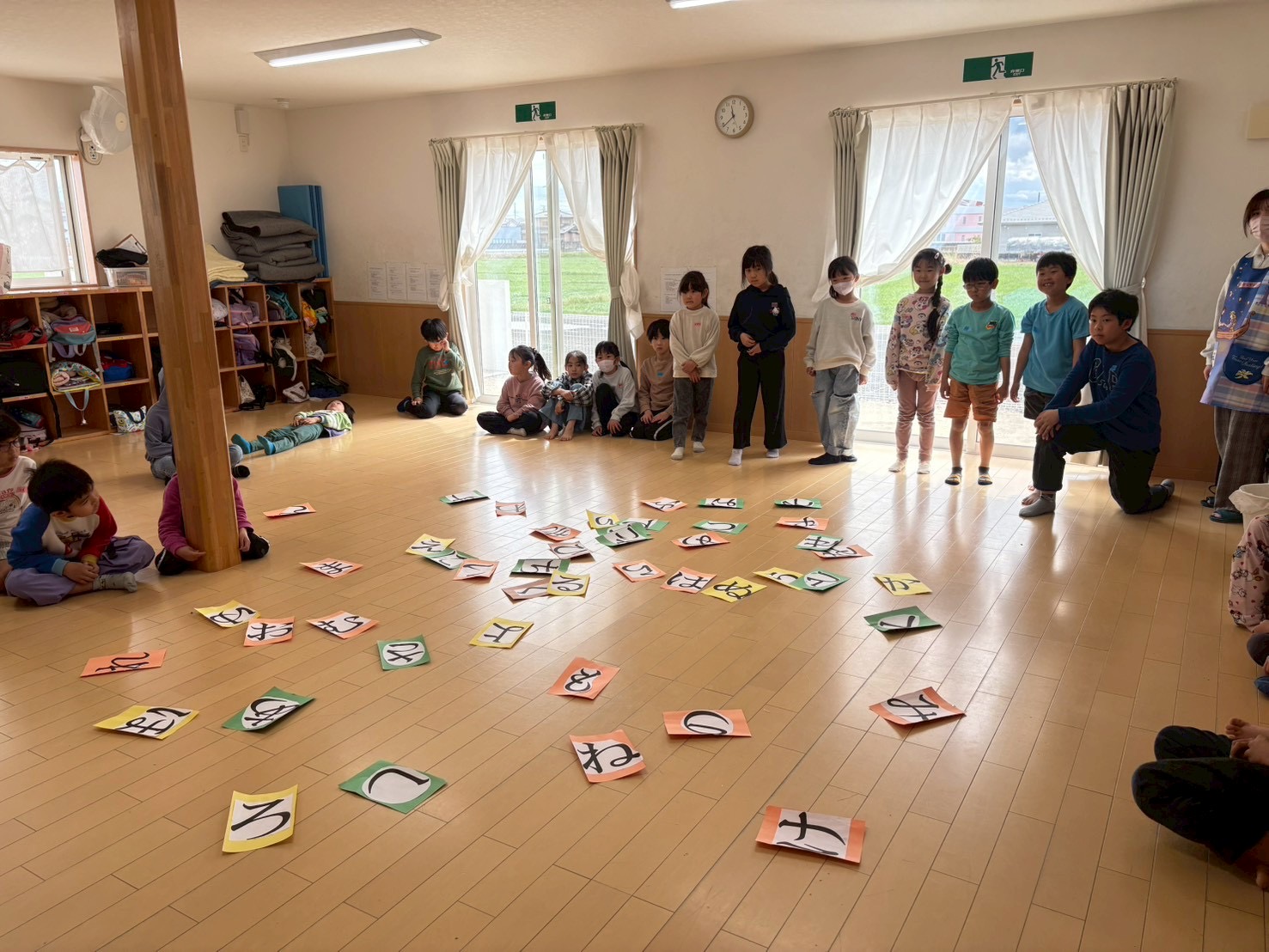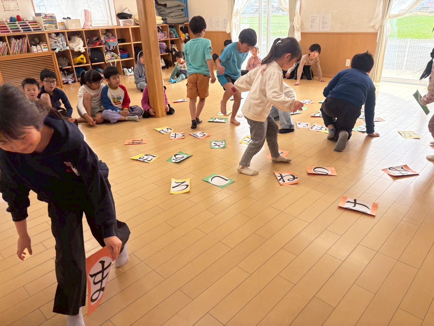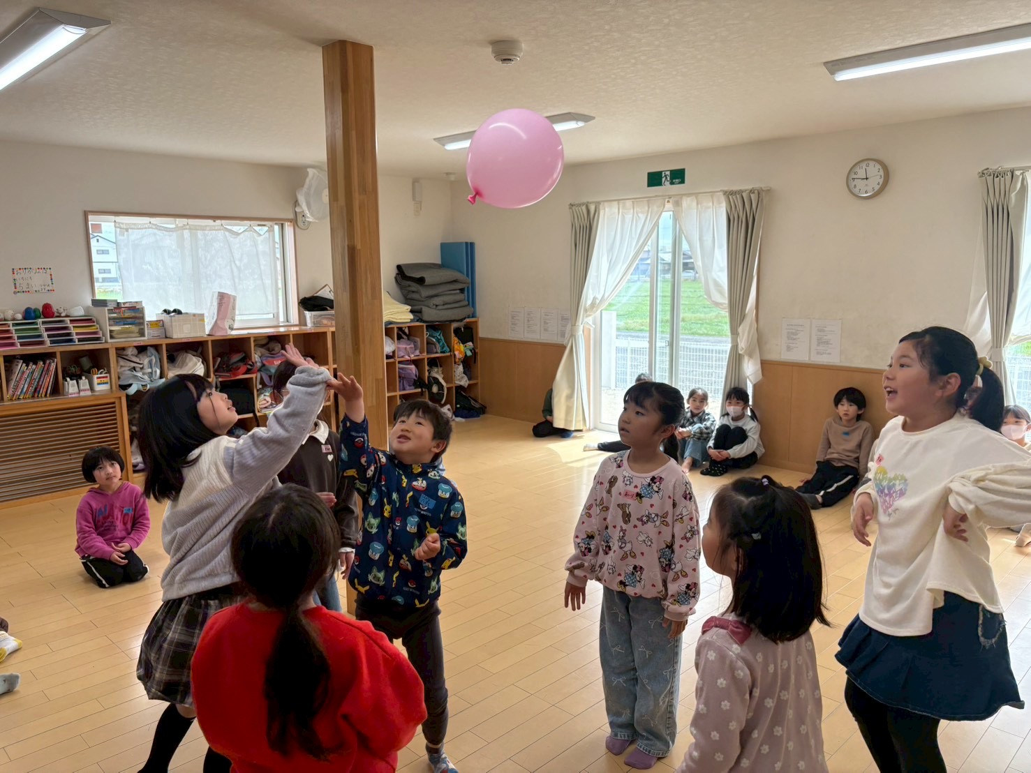 4/2、朝からあいにくの雨で外遊びが出来なかったので、急遽室内レクリエーションをしました。