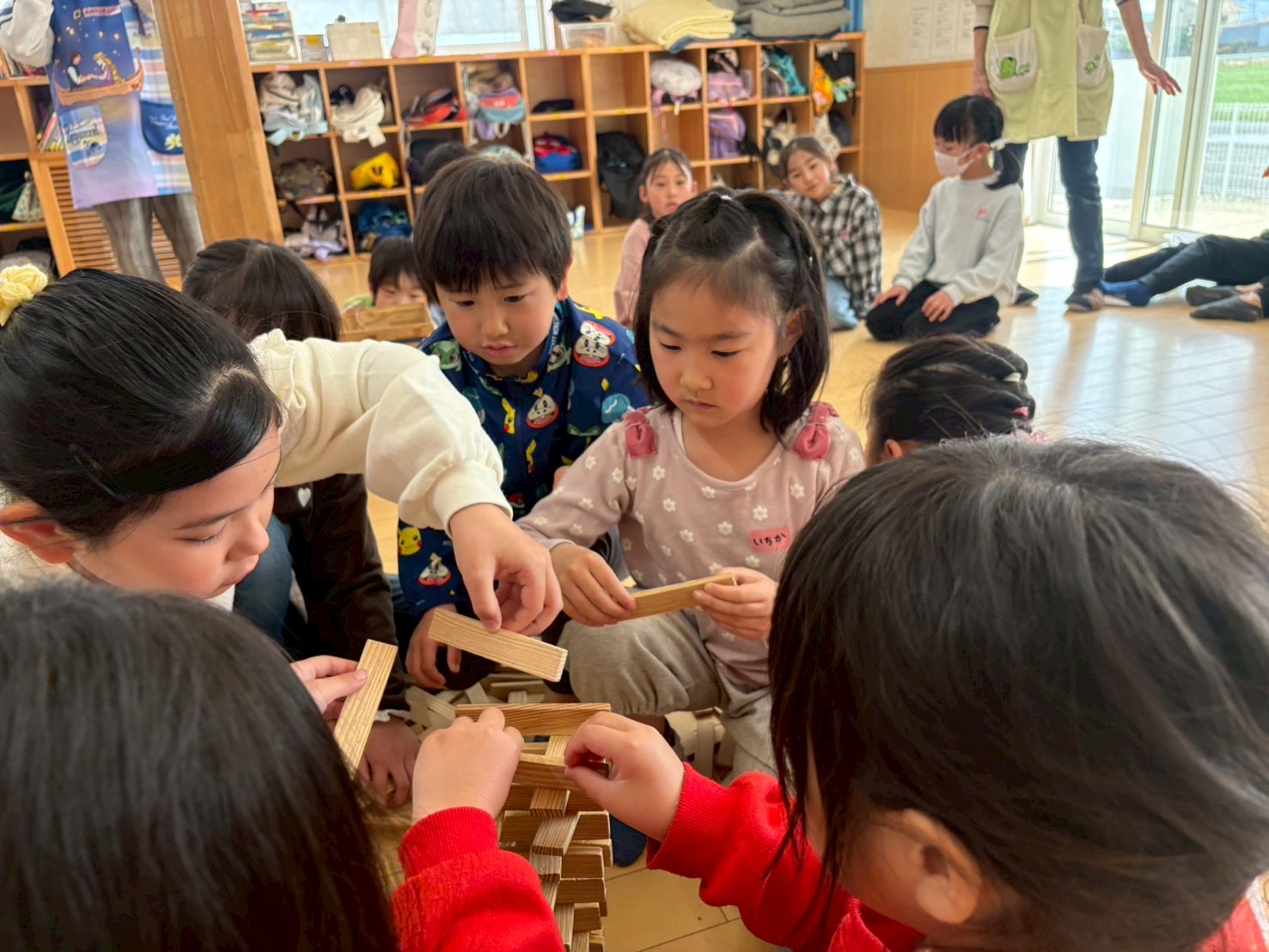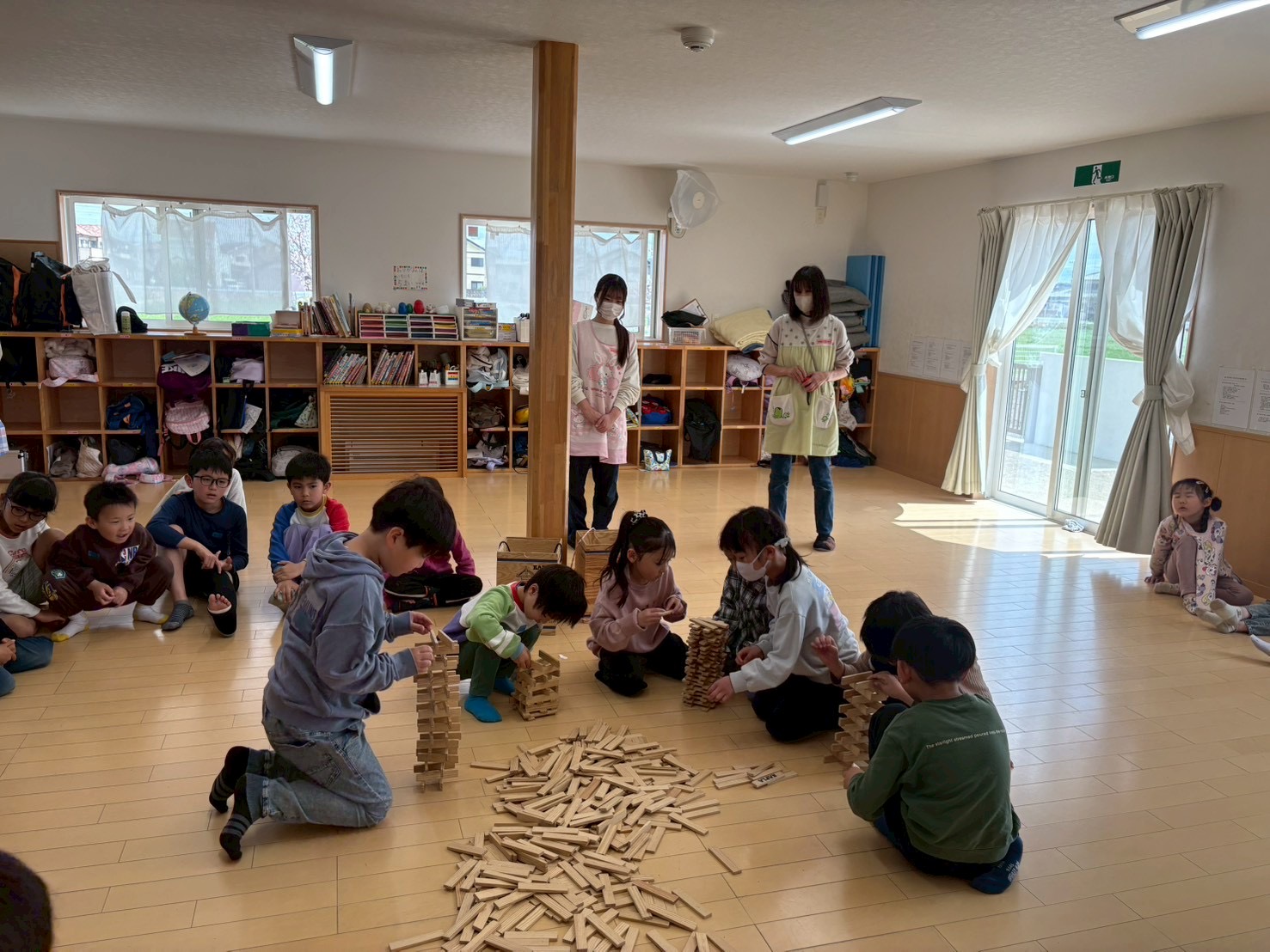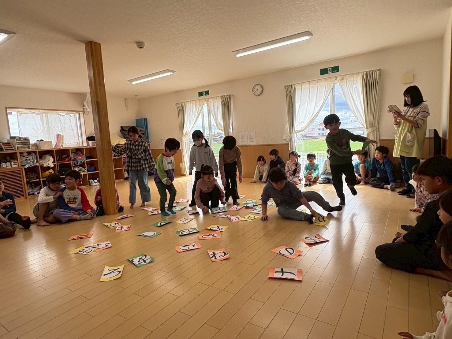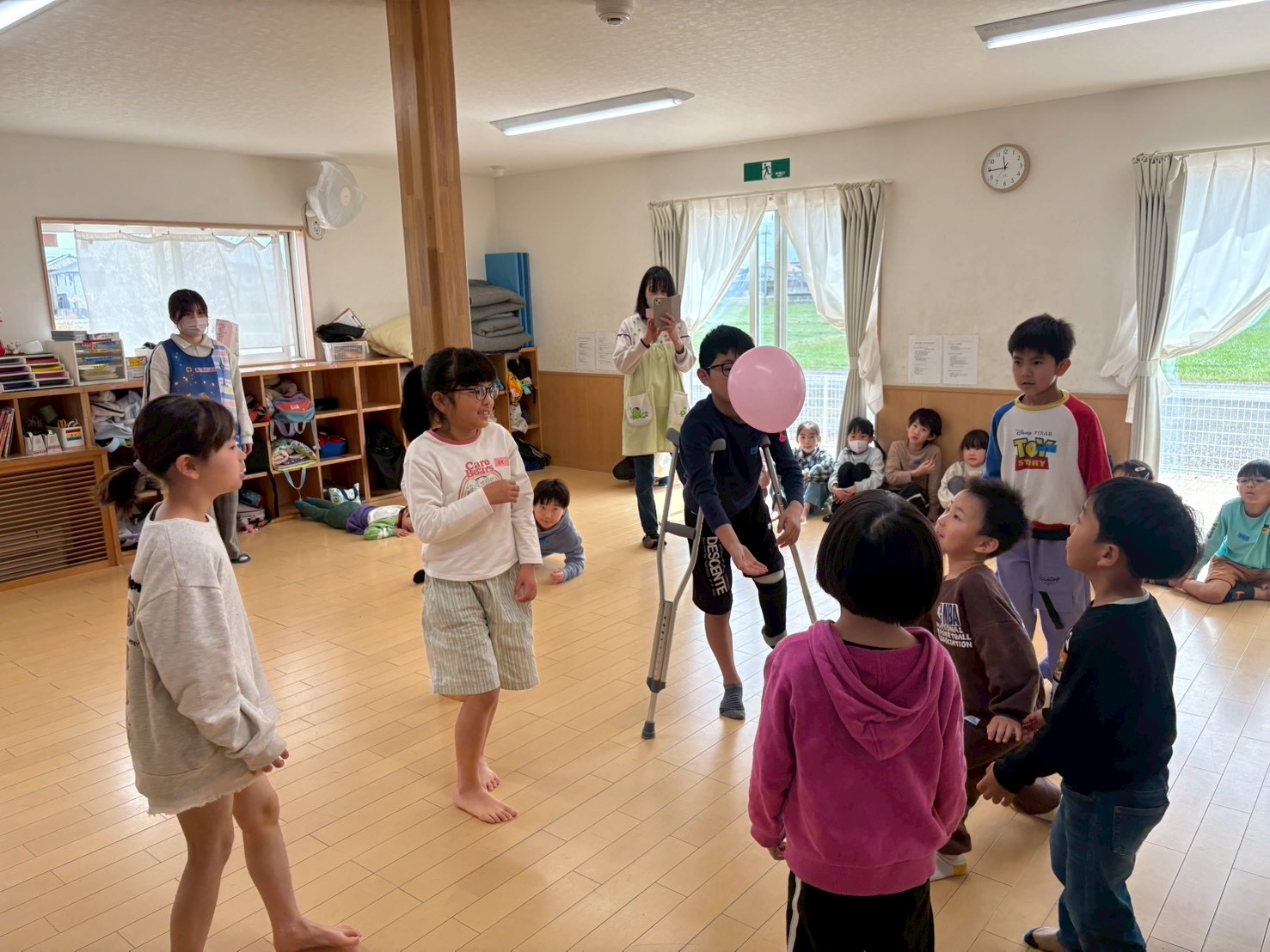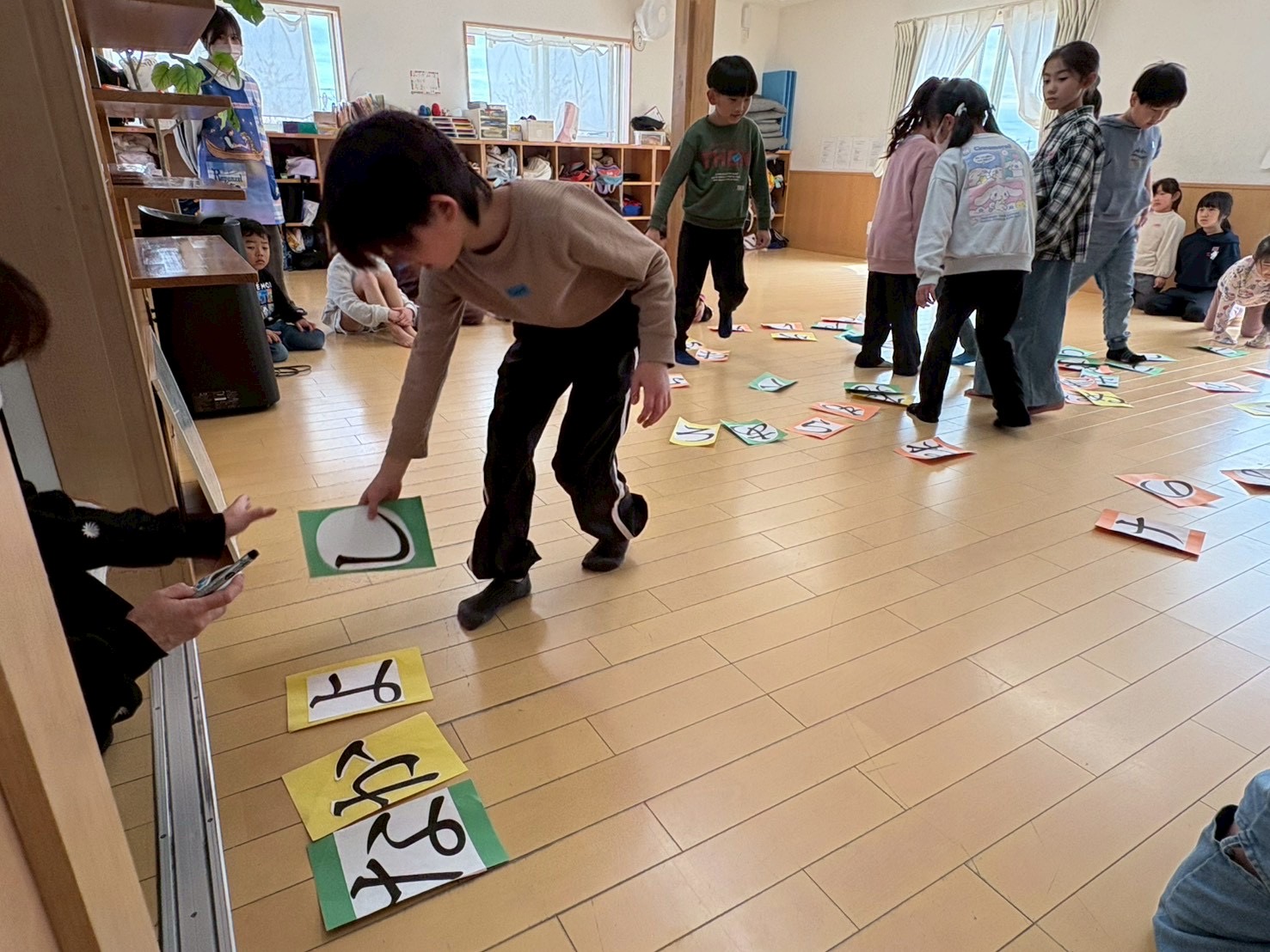 4/2、朝からあいにくの雨で外遊びが出来なかったので、急遽室内レクリエーションをしました。