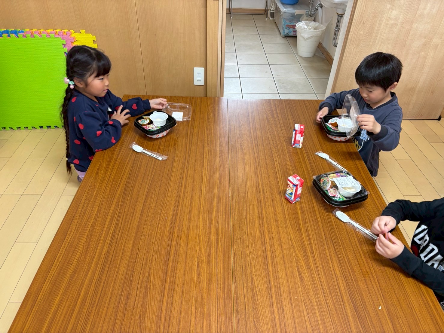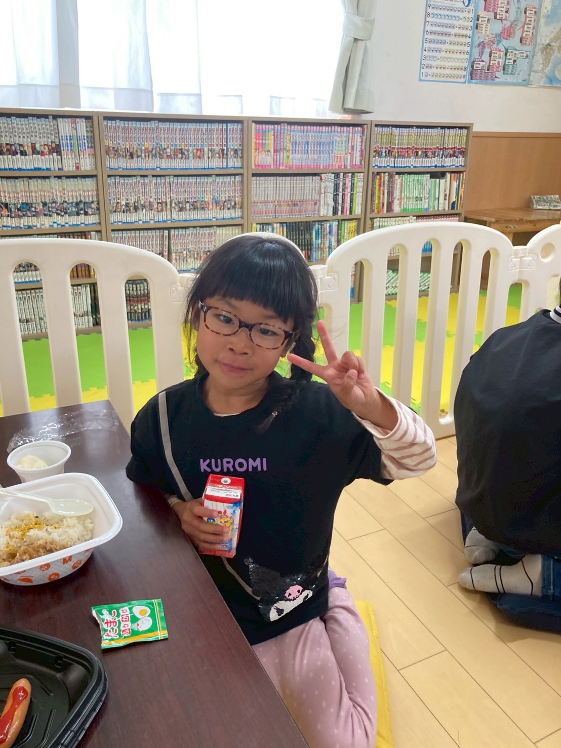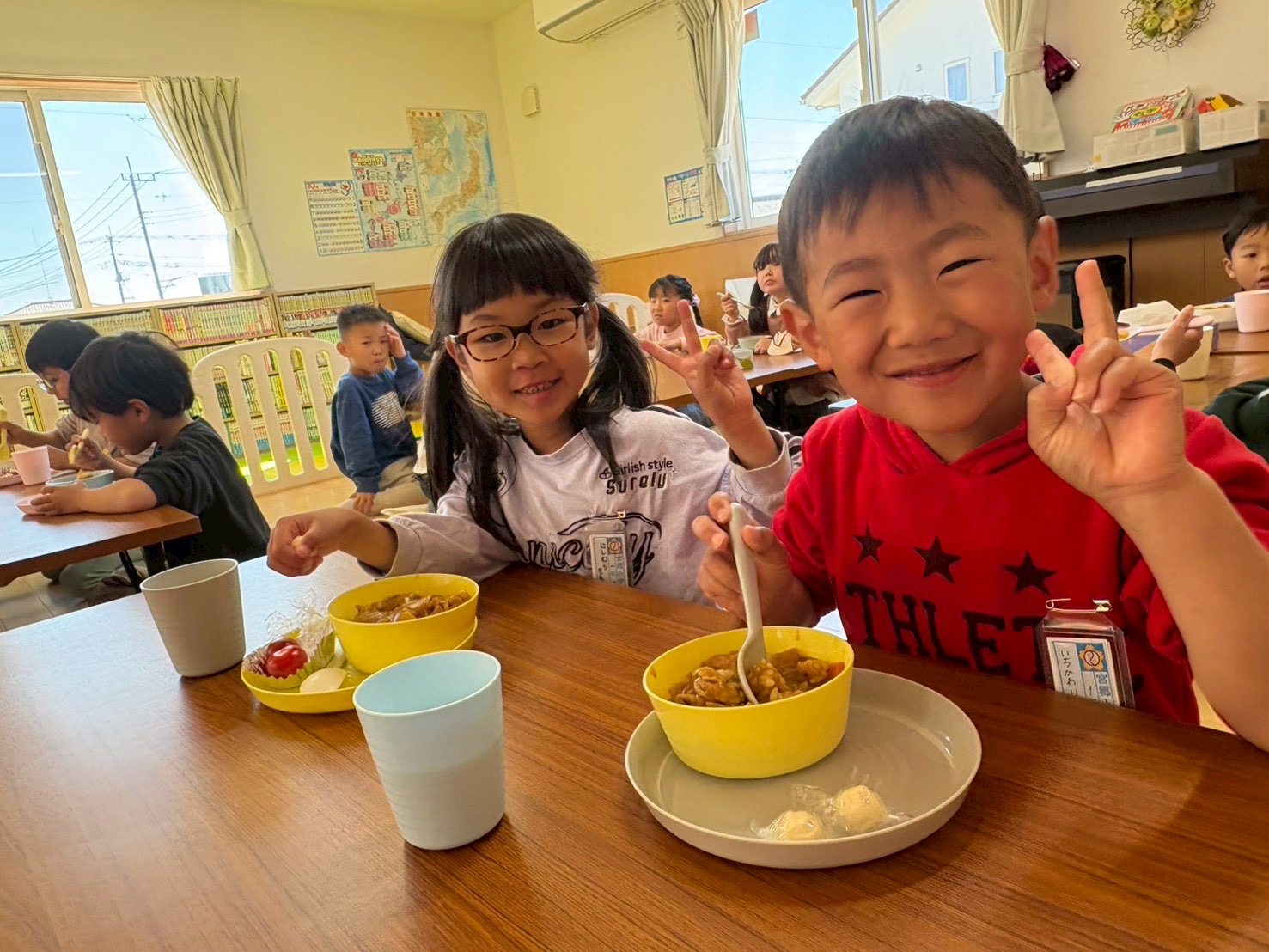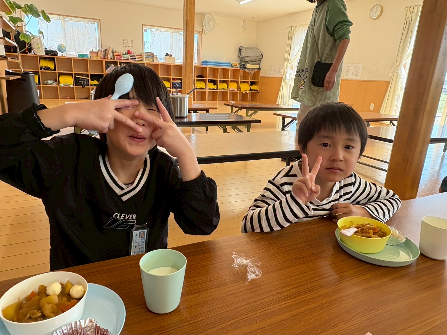 今週は給食なしでの下校のため、一年生には学童でお昼ご飯を提供させて頂いています。