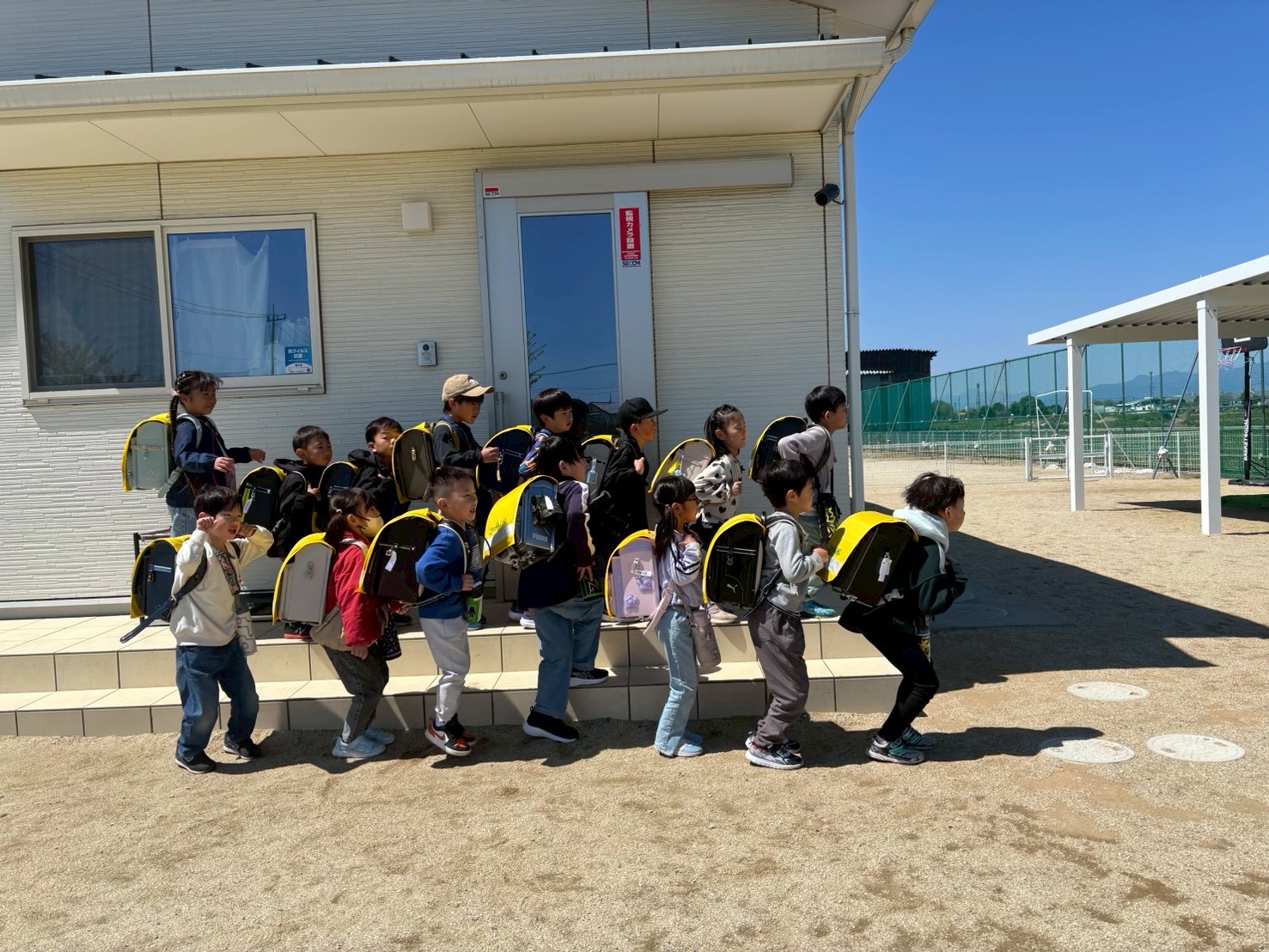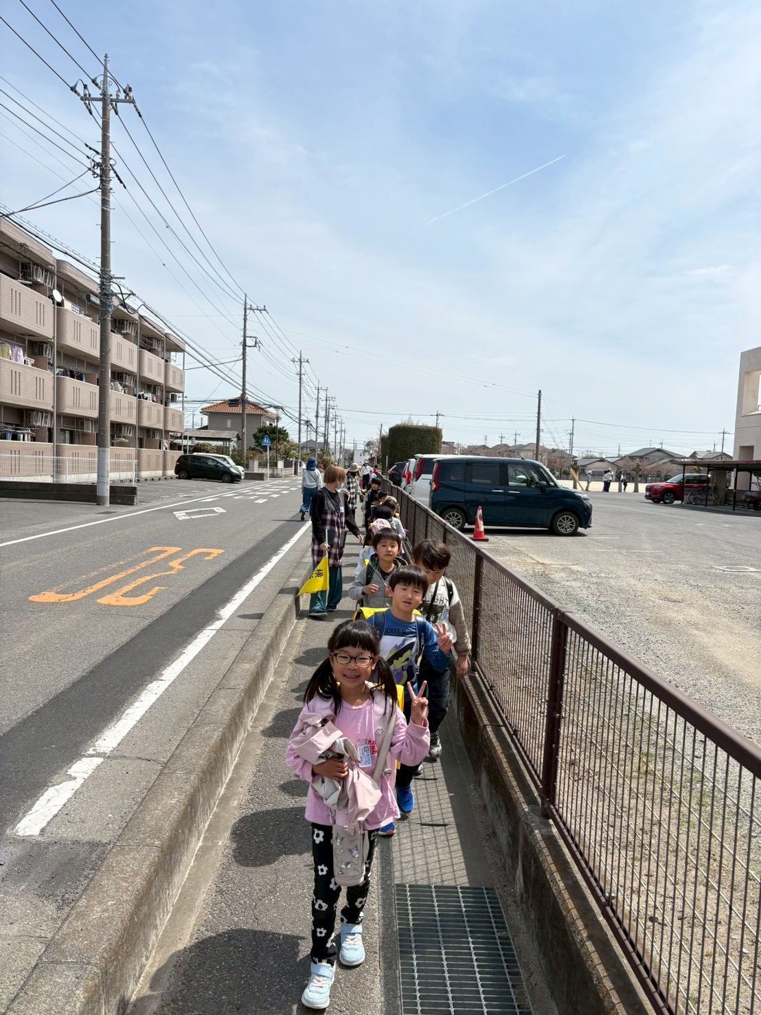 今年度のスマイルの1年生は総勢16名と多いのですが、一列に並んで全員で下校しています。