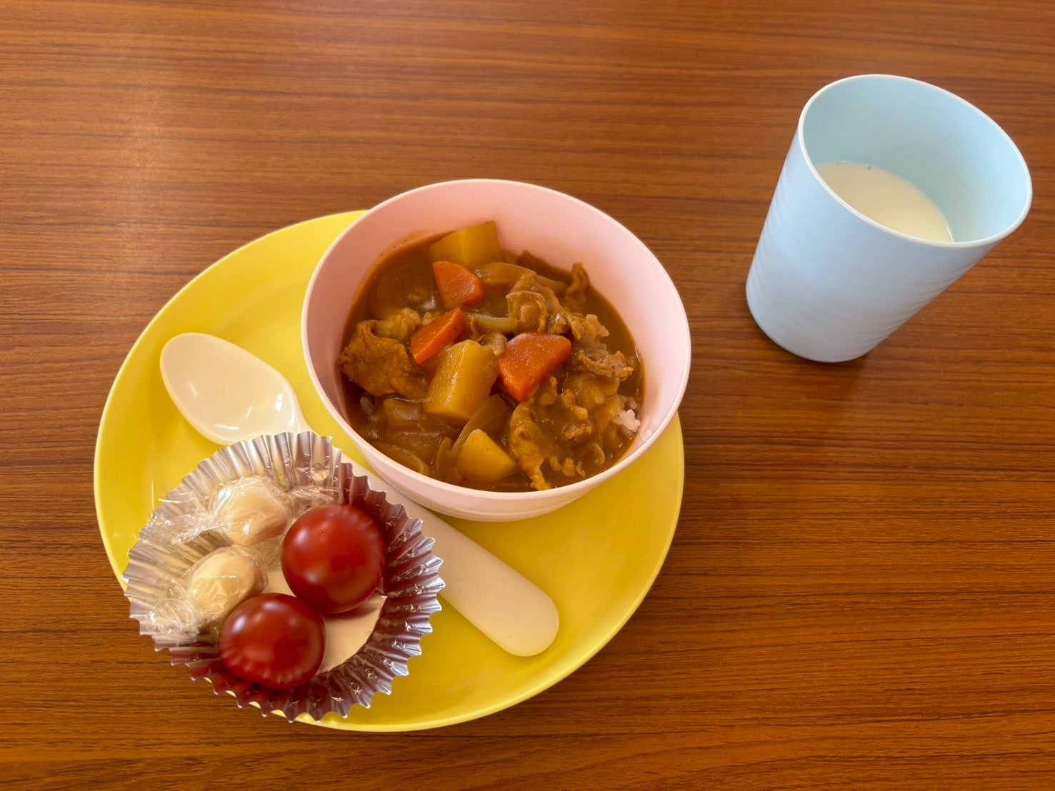 8日 カレーライス・ミニトマト・チーズ・牛乳